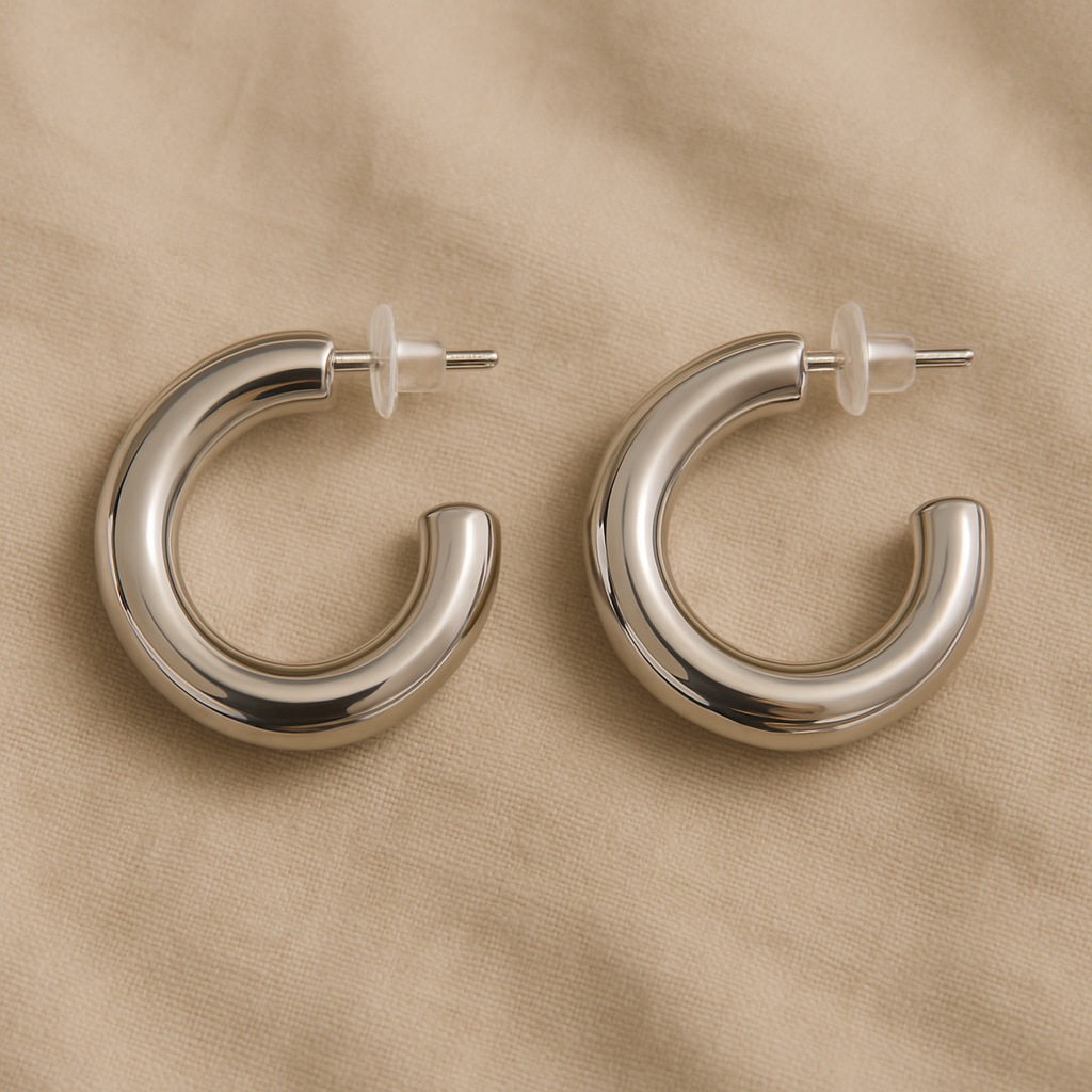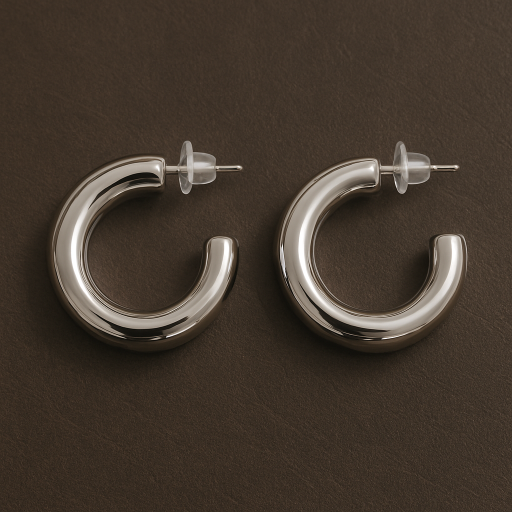 Make a fearless statement with Bold Curve – chunky silver-toned open hoops crafted with a sleek, high-shine finish. Their minimal yet striking design makes them the perfect blend of boldness and sophistication, elevating your everyday outfits and evening looks alike.