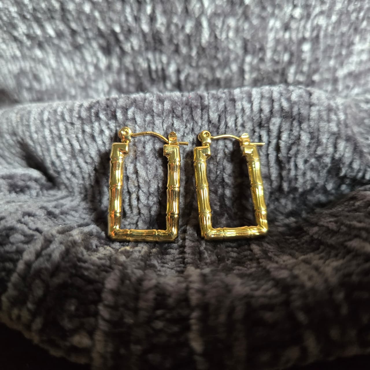 Elevate your style with these Bamboo-Inspired Rectangular Hoop Earrings. Lightweight yet durable, these hoops feature a unique bamboo texture that adds a touch of elegance to any outfit. Perfect for everyday wear or special occasions, they combine modern design with timeless charm.