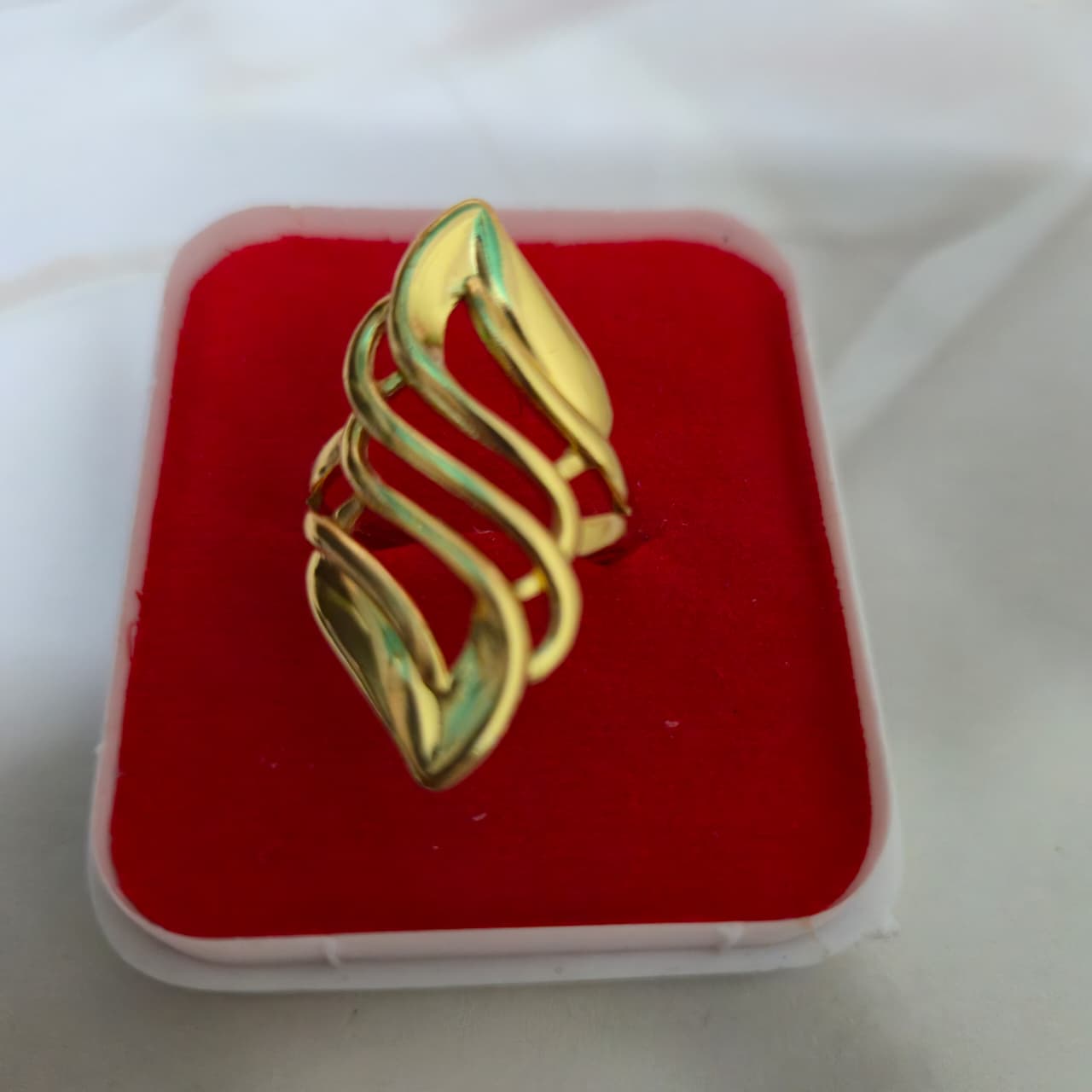 Inspired by modern sculpture, the Helix Embrace Ring features flowing gold-toned curves that reflect light with striking elegance. Crafted with an anti-tarnish finish to preserve its brilliance and an adjustable open fit for personalized comfort. A timeless statement of refined luxury.