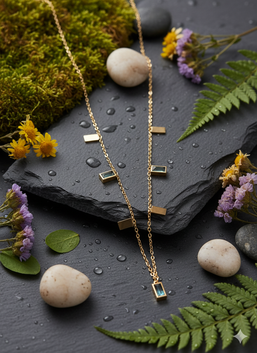 The Memory Link necklace is an elegant homage to the unspoken bond. Featuring two delicate, intertwined strands, the design symbolizes the parallel paths of two lives closely connected. Each alternating charm—from the simple golden bar to the brilliant blue-green stone—represents a collected memory: a cherished joke, a moment of support, or a spontaneous adventure. This is not a gift for a milestone; it is a link to your history, a constant reminder that your journey together is the greatest treasure of all.
