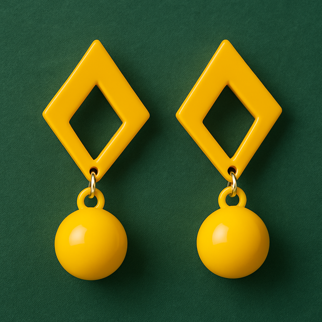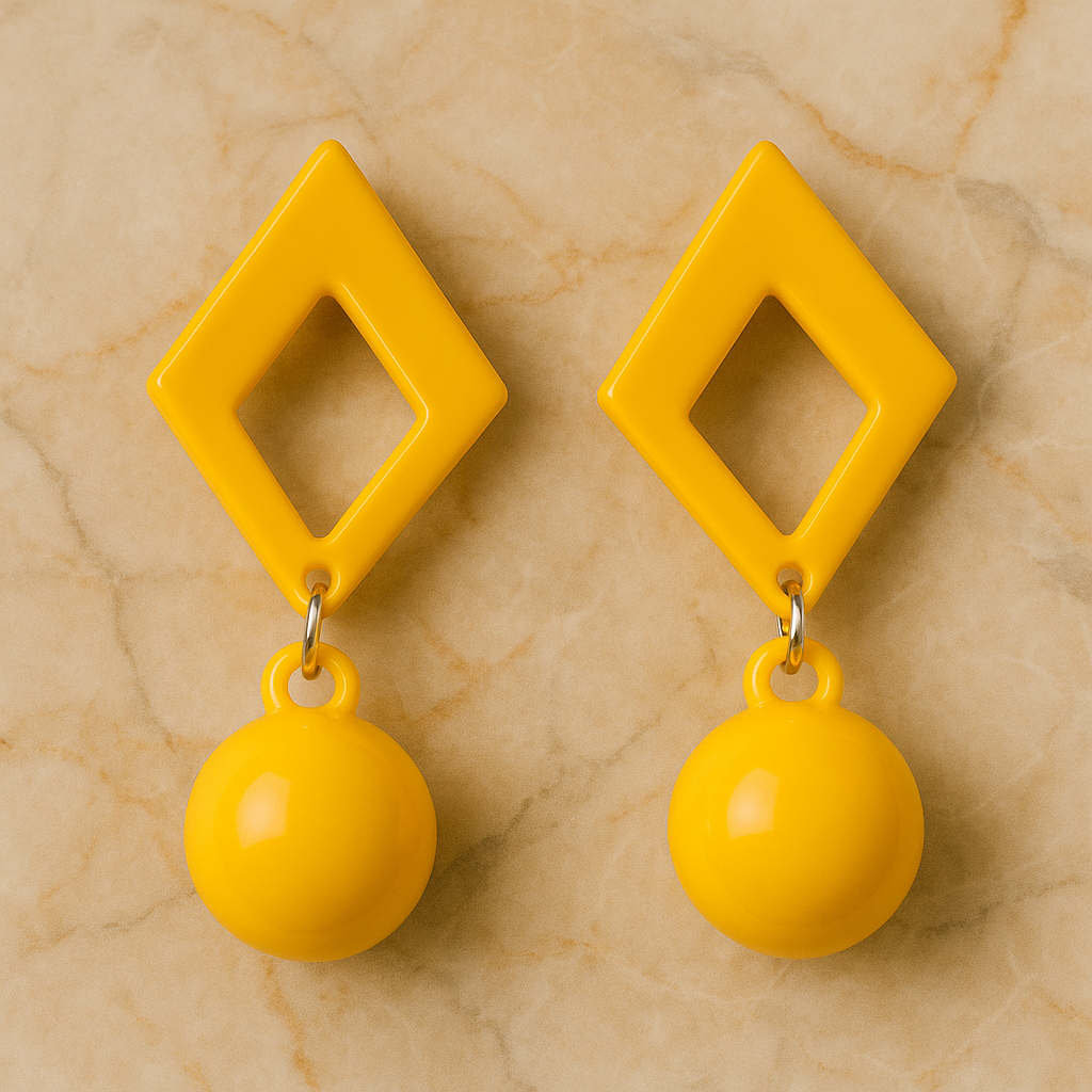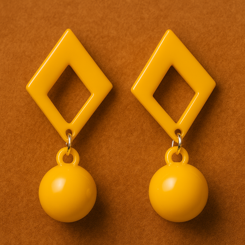 Turn heads with these statement earrings, crafted with a unique diamond-shaped open frame paired with a smooth, pearl-like drop. Their clean lines and glossy finish make them the perfect fusion of minimalism and boldness, designed for the fashion-forward woman who loves to stand out effortlessly.