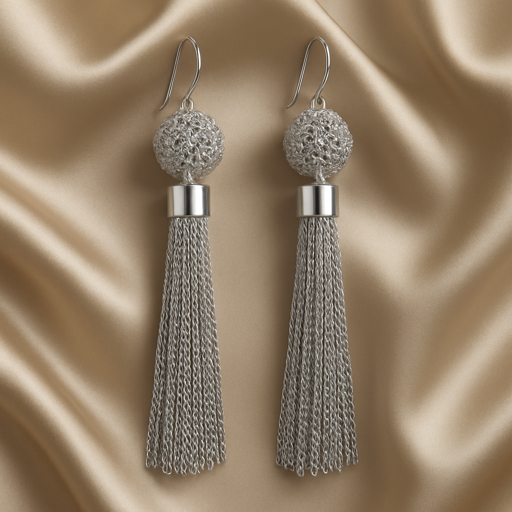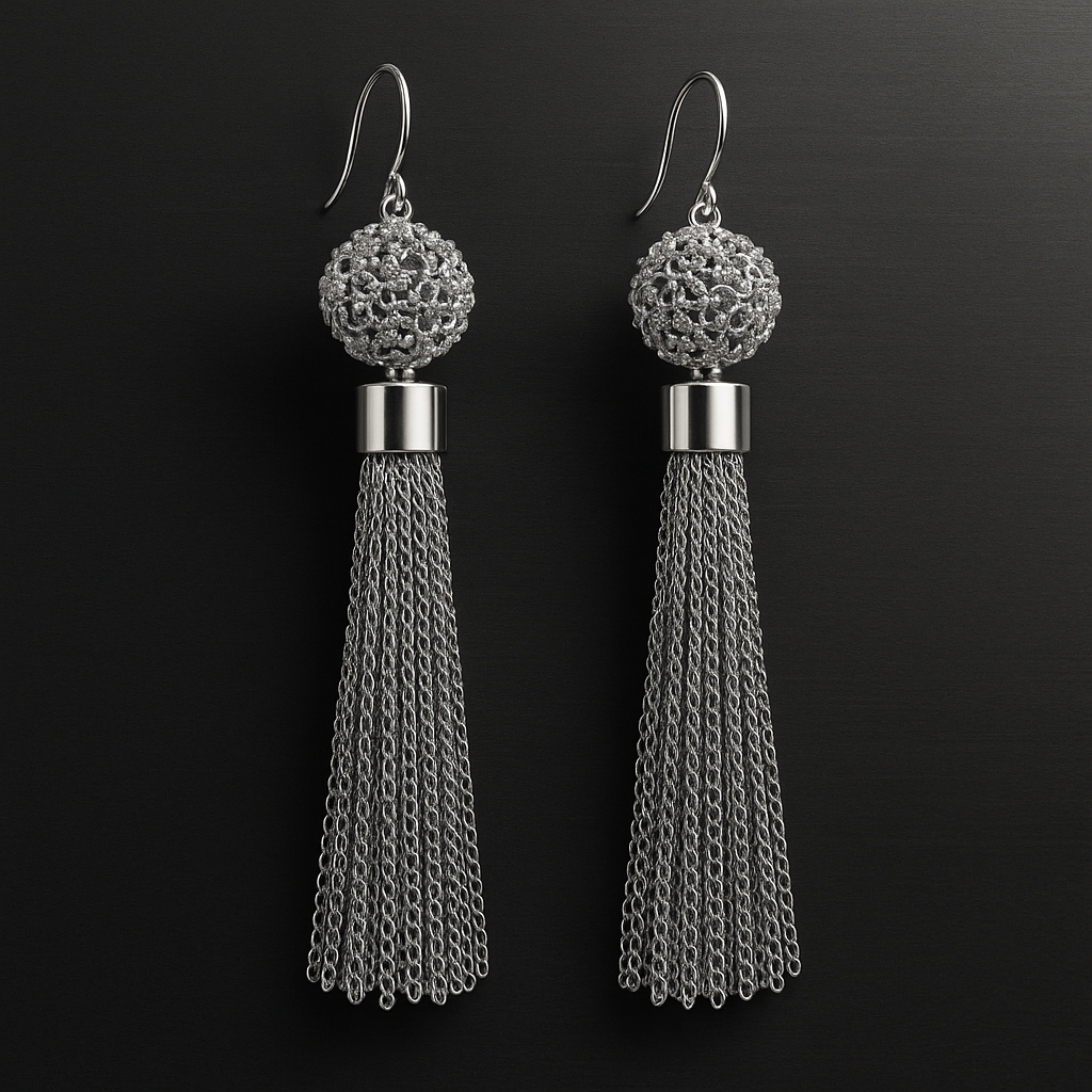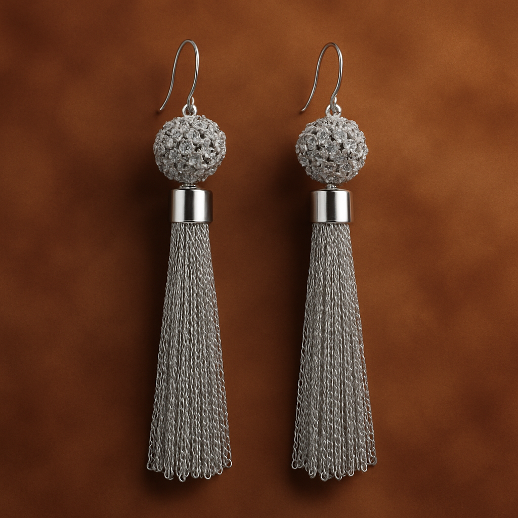 Let your style sway with Silver Breeze Earrings – elegant silver tassel earrings designed with an intricately crafted filigree stud and cascading chains that flow like a gentle breeze. These earrings combine timeless elegance and modern glamour, making them the perfect accessory for parties, festive nights, or evening glam looks. Lightweight yet statement-worthy, they’re your go-to for adding sparkle and movement.