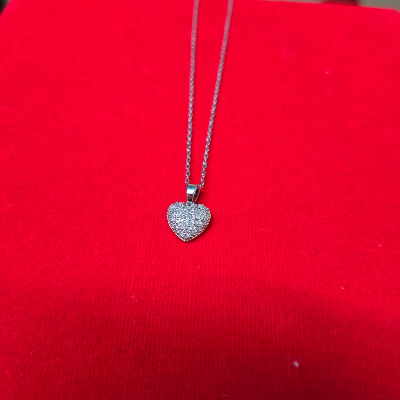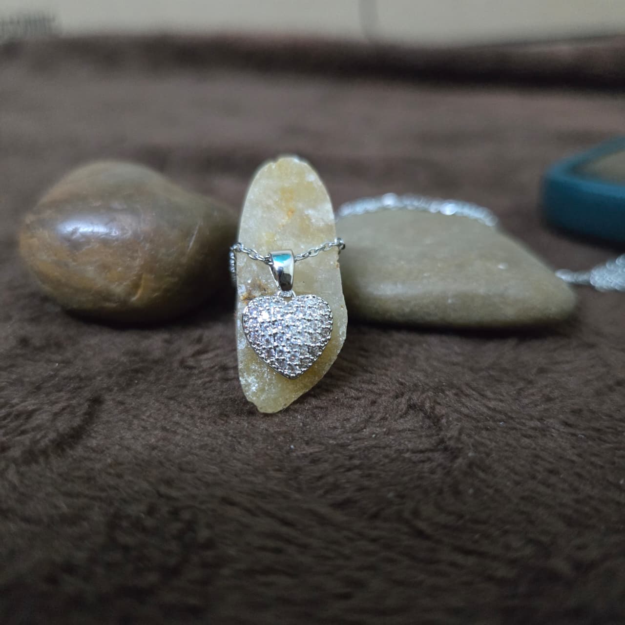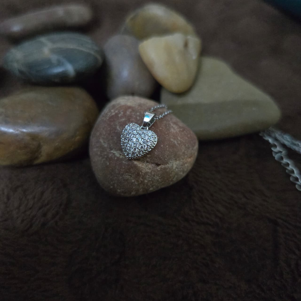 This exquisite piece features a beautifully crafted, heart-shaped pendant entirely covered in brilliant, micro-set cubic zirconia (or pave crystals), catching the light with every movement. Suspended from a delicate, twisted silver chain, it is the perfect symbol of eternal love and a dazzling reminder of the sparkle your soulmate brings into your life. Elegant, romantic, and truly radiant, this necklace makes the ultimate heartfelt gift.
