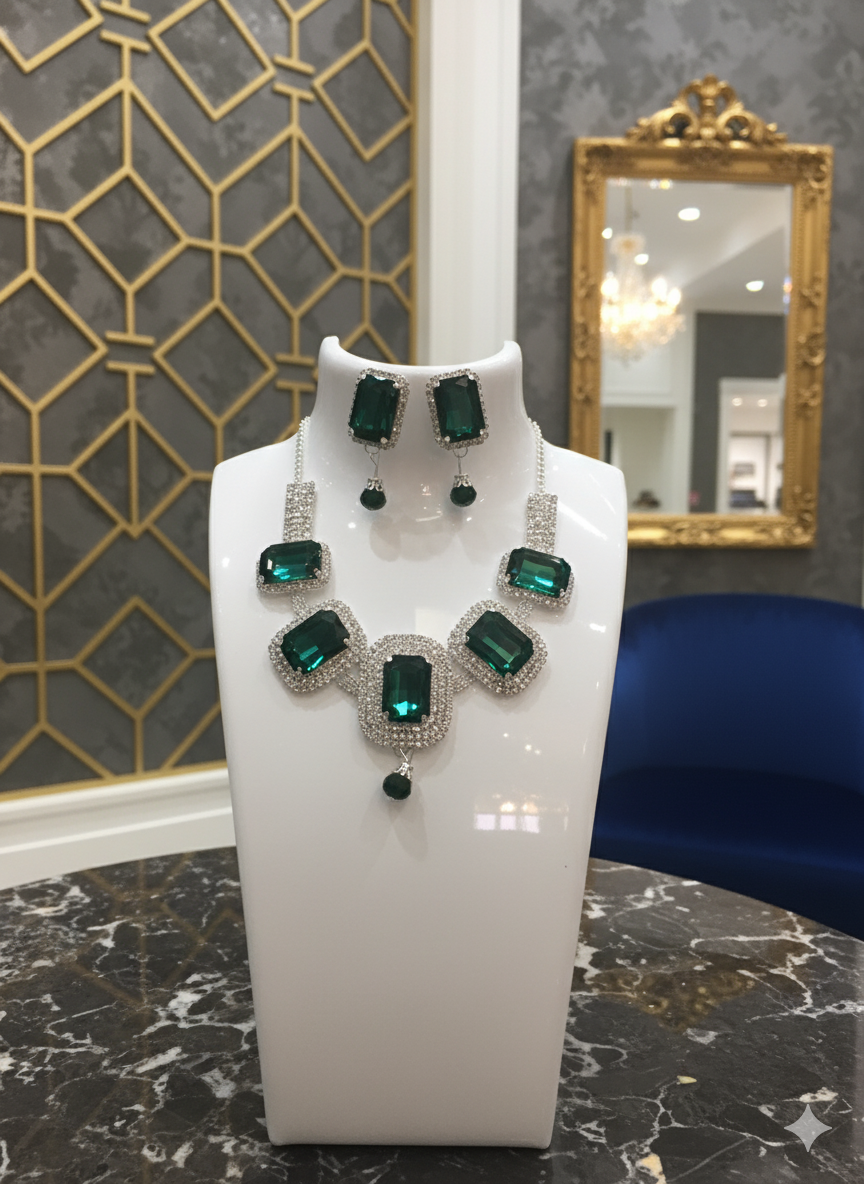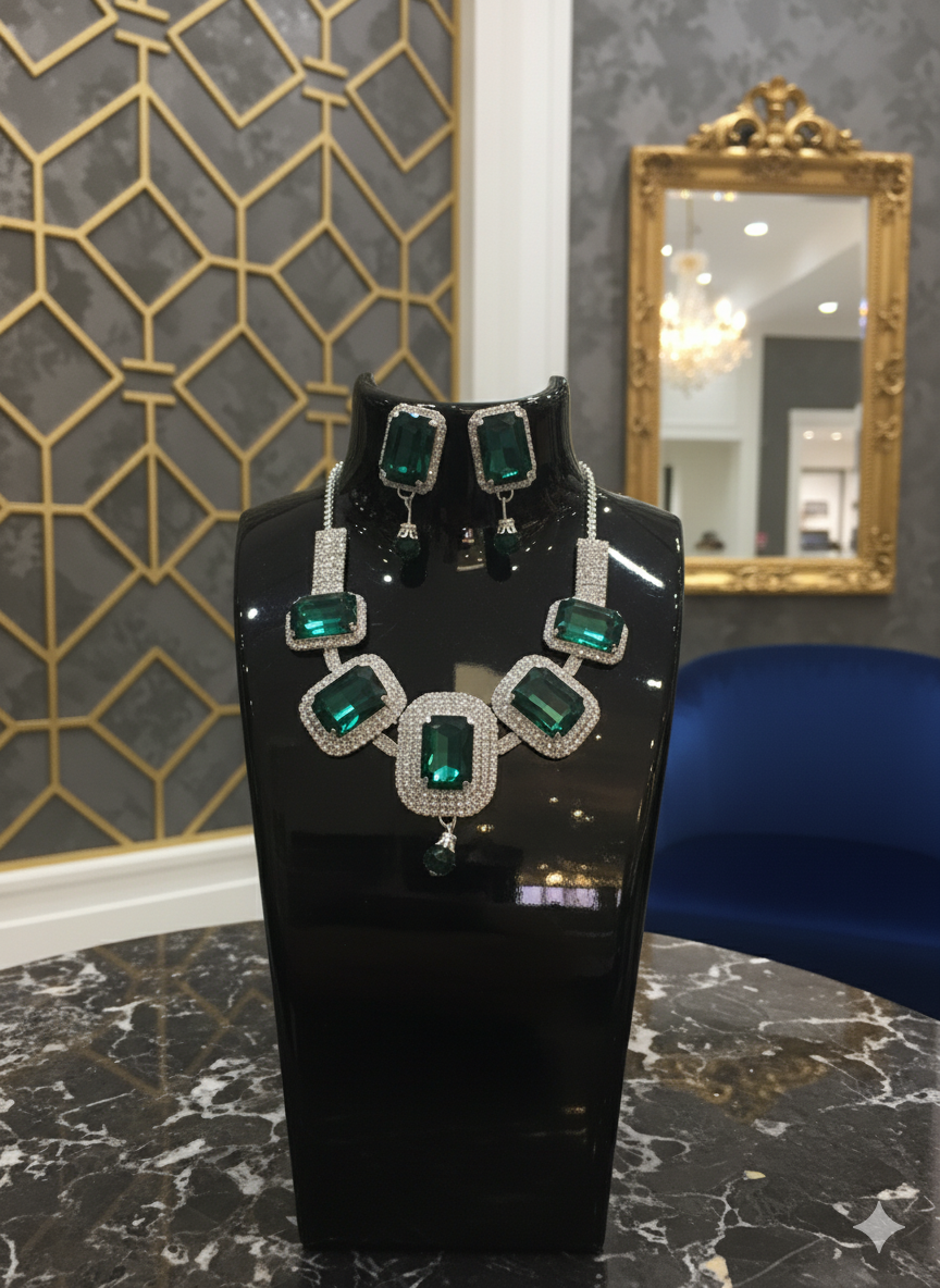 THE VERITAS set is the definition of Royal Brilliance. Featuring bold, emerald-cut crystals framed by flawless pave diamonds, this exquisite collection is a statement of prestige for the truly discerning collector.